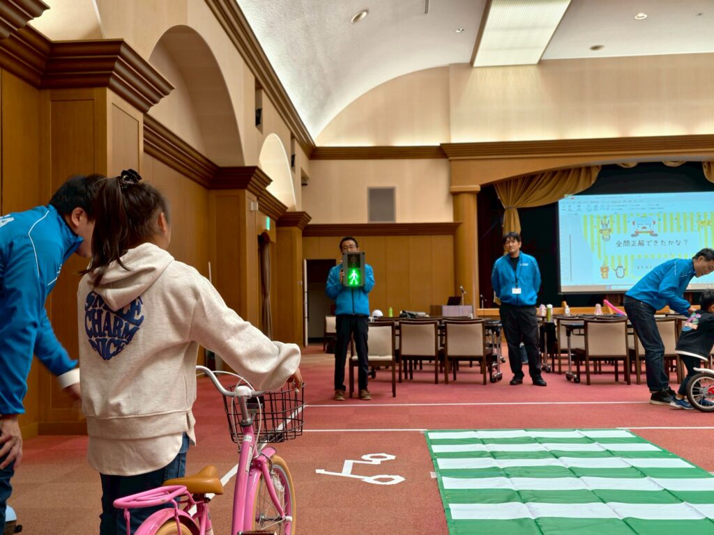 交通安全教室では、横断歩道を渡り方などを行いました。どちらも本格的な体験で子供たちも真剣に取