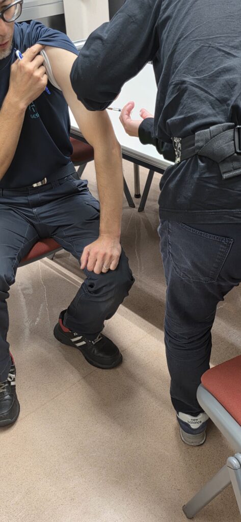 先日10月の社内安全ミーティングの後、社内で希望者のみのインフルエンザ予防接種を